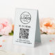This versatile tabletop tent is perfect for restaurants, bars, cafes, or any food service setting. While fully customisable, the current text reads “Scan Here” on the first line and “to view our menu and place your order” on the second. You can also add a table number, allowing customers to include it with their order. For venues with advanced tech, use unique QR codes for each table to streamline orders. With space for “Your Logo Here,” this tent boosts branding and promotes seamless, contactless ordering. QR Code Menu Modern Contactless Logo Table Tent Sign