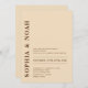 This invitation features a sophisticated beige background with a minimalistic design. The names of the couple are highlighted in bold, elegant typography, adding a touch of modern elegance to the invitation. The back features QR Code and monogram initials.