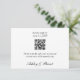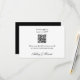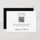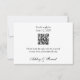 An elegant, classic yet modern and minimalist style, black and white wedding response card with QR code. The back of the card is a solid black background with "RSVP" in bold, white letters.