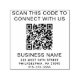 Modern and simple promotional stamp for your business or organization. Add your QR code and two lines of custom text, such as "scan to connect with us" and your company name, address and phone number.