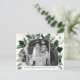 QR code Modern Greenery leaves Photo wedding save the date Announcement Postcard