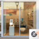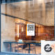 A simple custom white QR code vinyl window cling decal sign template in a modern minimalist style which can be easily updated with your QR code and custom text.