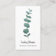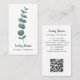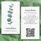 This modern business card is decorated with watercolor eucalyptus and a QR Code.