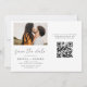 Modern and Elegant Landscape Horizontal Four (4) Photo QR Code Save the Date Wedding Magnet with hand lettered script typography. The save the date invitation magnet includes script typography and chic and simple design that you can add your customised engagement photograph picture to.