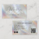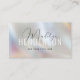 Customise this "QR Code Modern Scannable Script Pearl Glass Business Card", featuring a name in a beautiful modern script, and last name on a mother-of-pearl colour glass effect background. Add your name, professional title, business name or description, contact information, social media username, icons (Instagram, Facebook), address, and QR code URL. Please get in touch with the store designer for further customisation if needed.