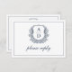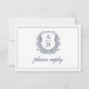 QR Code Navy Blue Crest Monogram Wedding RSVP Card
