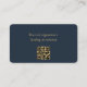 Professional business card designed for notary publics using a navy blue color palette with gold accents. The layout includes a QR code to share online information while keeping contact details clear and easy to read. Suitable for notary publics, mobile notaries, and professional notary services. Fully customizable text and QR destination with a print-ready layout.