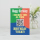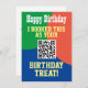 Celebrate a birthday with a personalised card showing your choice of QR Code which takes the recipient to a website page of your choosing. Add your own personal message inside too.