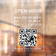 Display your business hours clearly with this modern minimalist open hours design. Add your custom message, QR code, logo, and website to help customers get instant information. Perfect for cafes, coffee shops, restaurants, salons, and small businesses. The clean white text style gives a professional and highly visible look on any door or window.