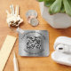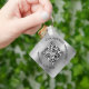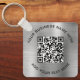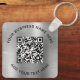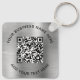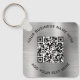 Simple elegant promotional keychain for your business or organization with a silver faux brushed metallic background. Add your QR code or logo and two lines of customized text, such as your company name, slogan, thank you, or leave blank.