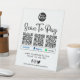 Modern, professional black and white business scan to pay qr pedestal sign. Design features typography script ''scan to pay'' in trendy black lettering, white background, 3 qr codes with payment method that can be replaced by your own icons if required. Personalise further with your logo , website, social media and phone number. Perfect for small business owners.