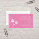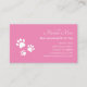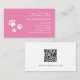 QR code Pet Sitter pink business card, with a paw print design and white and black lettering. With customisable text, you can add your own information. The back has a QR code where you add your website. Great for adding a trendy touch your pet services business.