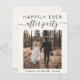 Budget-friendly light cream elopement or private wedding announcement and all-in-one wedding reception invitation. The front features your photo, "Happily Ever After Party" in a mix of simple typography and a stylish script with swashes and your first names and wedding or reception date joined together by a heart. On the back, personalise your marriage announcement and reception invitation, input your wedding website address to create a QR code for guests to scan to see your wedding photos, all the details and to RSVP online, and add your names in a signature-like script. This budget semi-gloss paper is similar in weight to photo paper. A larger 5x7 traditional card stock version is also available (message us for the link).