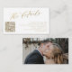Simple minimalist trendy modern photo gold calligraphy wedding details scanning QR code to website enclosure cards (the code is automatically generated with your link URL). Easy to personalise with your photo (back), your code, and text.