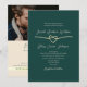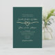 Invite your guests with style using this modern emerald green wedding invitation, featuring a gold rope heart design and a convenient QR code for easy RSVP access. The minimalist layout, personalised names, and date add a perfect touch of sophistication to your special day. A functional yet elegant option for your wedding!