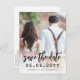 Get on your guests' calendars by sending this modern Save The Date wedding invitation / announcement post card with QR Code. Featuring a full photo template with modern chic script calligraphy and modern typography text templates on the front with a light semi-transparent overlay at the bottom. On the back is a text template for your return address, and a plain simple text template with a sample personal message or note to your guest, along with a QR Code placeholder template and web site text template, all on a white background. Simply upload your own photo, and personalise the text with your wedding date, your names, and the ceremony location on the front, and on the back customise your return address and personal message the full URL to your wedding web site for the QR Code, and your wedding web site. You can delete all the text in the back if you prefer to have just the QR Code there.  If you're on a budget, this post card can serve as your invitation, and your guests can RSVP on your wedding web site.