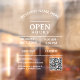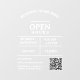 Modern, Stylish QR Code Restaurant Salon Business Open Hours Door Window Cling. This is for glass surface.