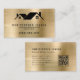Help your roofing business stand out from the crowd with this bold, eye-catching black and gold business card. A gold faux brushed metal image provides the background for the black roof logo and black text to highlight your business name, contact information and other details. A QR code on the back takes customers and clients to your website.
