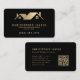 Help your roofing business stand out from the crowd with this bold, eye-catching black and gold business card featuring rounded corners. The gold faux brushed metal roof logo is paired with gold-colored text to highlight your business name, contact information and other details. A QR code on the back takes customers and clients to your website.