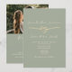 Modern sage green wedding invitation featuring a romantic gold rope heart, elegant typography, and a matching photo RSVP card with a QR code. This stylish suite blends classic charm with digital convenience—ideal for today's couples. Personalise with your names, wedding details, and custom website.