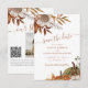 Modern rustic elegant watercolor botanical flowers, pumpkins, pampas grass, foliage, and dried leaves making a chic autumn wedding save the date card with custom engagement photo, a trendy handwriting calligraphy script and earthy terracotta beige colour palette. ++++++++++++++++ Personalise it with your picture and QR code to your website.