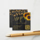 Rustic elegant sunflowers wedding invitation MINI SIZE online response square enclosure card with scanning QR code (automatically generated) on a dark brown barn wood background with strings of twinkle lights. +++++++++ Matching stationery available in the collection.