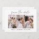 QR Code - Modern and Elegant Landscape Horizontal Three (3) Photo Save the Date Wedding Magnet with hand lettered script typography. The save the date invitation magnet includes script typography and chic and simple design that you can add your customised engagement photograph picture to.