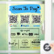 A simple bold custom business scan to pay by Google Pay Venmo or Paypal QR code sign in a modern minimalist style. The versatile template can easily be updated with your company logo, graphic or photo, 3 QR codes, custom texts, payment icons and social media icons. The icons can easily be replaced with your own to make a truly bespoke professional design for your own business! For example you could include other social media account (such as Linkedin, WhatsApp, YouTube) or payment icons (such as CashApp, Zelle, Bitcoin) and so much more! Need help? Feel free to contact me using the message button on the product page. I am happy to help with your personalisation such as adding different icons.