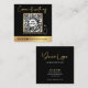 Modern QR code business card with faux gold script text and black background. This gold foil effect instagram and facebook QR code card is perfect to add your social media information, insert your QR code and logo and contact details to encourage customers to connect with you and follow you online. The modern 'scan with a phone' design makes this social media follow us card really trendy and chic.