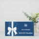 The design includes a decorative ribbon on a confetti background, with the company’s custom logo and name displayed prominently on the right. Beneath this, the voucher value is clearly presented.