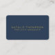 Crafted with a navy blue background and accents of gold, this card exudes elegance and professionalism. Its double-sided layout maximises space for essential information, ensuring all your contact details and services are readily available to potential clients. The inclusion of QR codes on both sides offers convenient access to your online profiles and resources with a quick scan, enhancing connectivity and engagement.