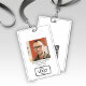 Stylish ID badge design featuring a prominent photo and personalised logo. QR code on back for quick smart contact sharing. Perfect for company identification and security. Also, great for professional event badging.