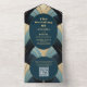 QR Code Sophisticated Blue and Gold Art Deco Weddi All In One Invitation