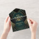 QR Code Sophisticated Green and Gold Art Deco Wedd All In One Invitation