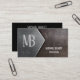 Steel grunge metal texture background with initials, name and profession on the front side. At the reverse side is a scannable qr code.