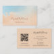Terracotta and blue watercolor background business card with a custom name in an elegant hand lettered script. It resembles a beach, sand and the sea.Templates for your name, title, phone number, mail and website address, QR-code to your website or social media account. This minimalist business card is perfect for beach property realtors, beach-based businesses like beach boutique, beach hotel, beach real estate agent, as well as spa and massage therapy.