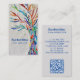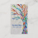 This decorative business card features a colourful tree of life on a pale grey background.