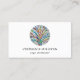 This yoga instructor business card is decorated with a rainbow-coloured mosaic tree of life design.