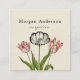 QR Code Square Business Card - Beautiful antique flowers (tulips) botanical illustration on a vintage paper background. The template text fields are pre-designed to allow you to personalise easily. Add your tag line or motto with qr-code and contact information. Classic and elegant floral. Modern square business card.