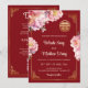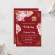 This elegant Chinese wedding invitation features watercolor peonies, a gold Chinese frame and a gold double happiness symbol on a dark red background. Bride and groom names in an elegant handwritten script. Chinese wedding invitation or tea ceremony invitation. At the backside are the details and a scannable qr code for your wedding website.