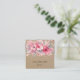 QR Code | Watercolor Pink Flowers Kraft Square Business Card