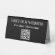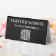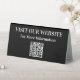 Budget website information promotional scannable QR code promotional desk signs you can use to promote your clients to seek additional information in an office visit waiting room, at corporate events, or trade shows with QR code template you can replace with your own for customers to read and scan at company meetings, educational seminars, or advertising and marketing and Includes printing on both sides in simple budget friendly tent style signs.
