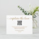 Customise every detail to make this card uniquely yours. Simple, Gold and white design which you can personalise with a message alongside the QR code. The custom QR code makes it simple for guests to share their photos, ensuring you capture every precious moment from your celebration.