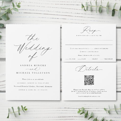 QR Code Wedding Registry Delicate Calligraphy Enclosure Card