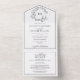 QR Code White Black Leafy Crest Monogram Wedding All In One Invitation