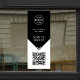 A simple custom black and white QR code business vinyl window cling decal sign template in a modern minimalist style which can be easily updated with your company logo, QR code, and custom text, eg. Scan Me, Scan to Sign Up, Scan to Connect with us!