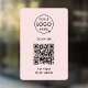 A simple custom blush pink business vinyl window cling decal sign template in a modern minimalist style which can be easily updated with your company logo, QR code and custom text.