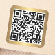 Square stickers with your QR code surrounded by a golden gradient (printed image) border with a brushed metal effect (simulated in the artwork). NOTE! YOU NEED TO REPLACE THE QR CODE TEMPLATE WITH YOUR OWN QR CODE!