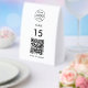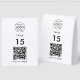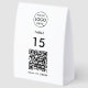 A simple custom white business scan to order paper table tent sign in a modern minimalist style. The versatile template can easily be updated with your company logo, graphic or photo, QR code, table number and custom text.