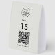 A simple custom gray business scan to order paper table tent sign in a modern minimalist style. The versatile template can easily be updated with your company logo, graphic or photo, QR code, table number and custom text.